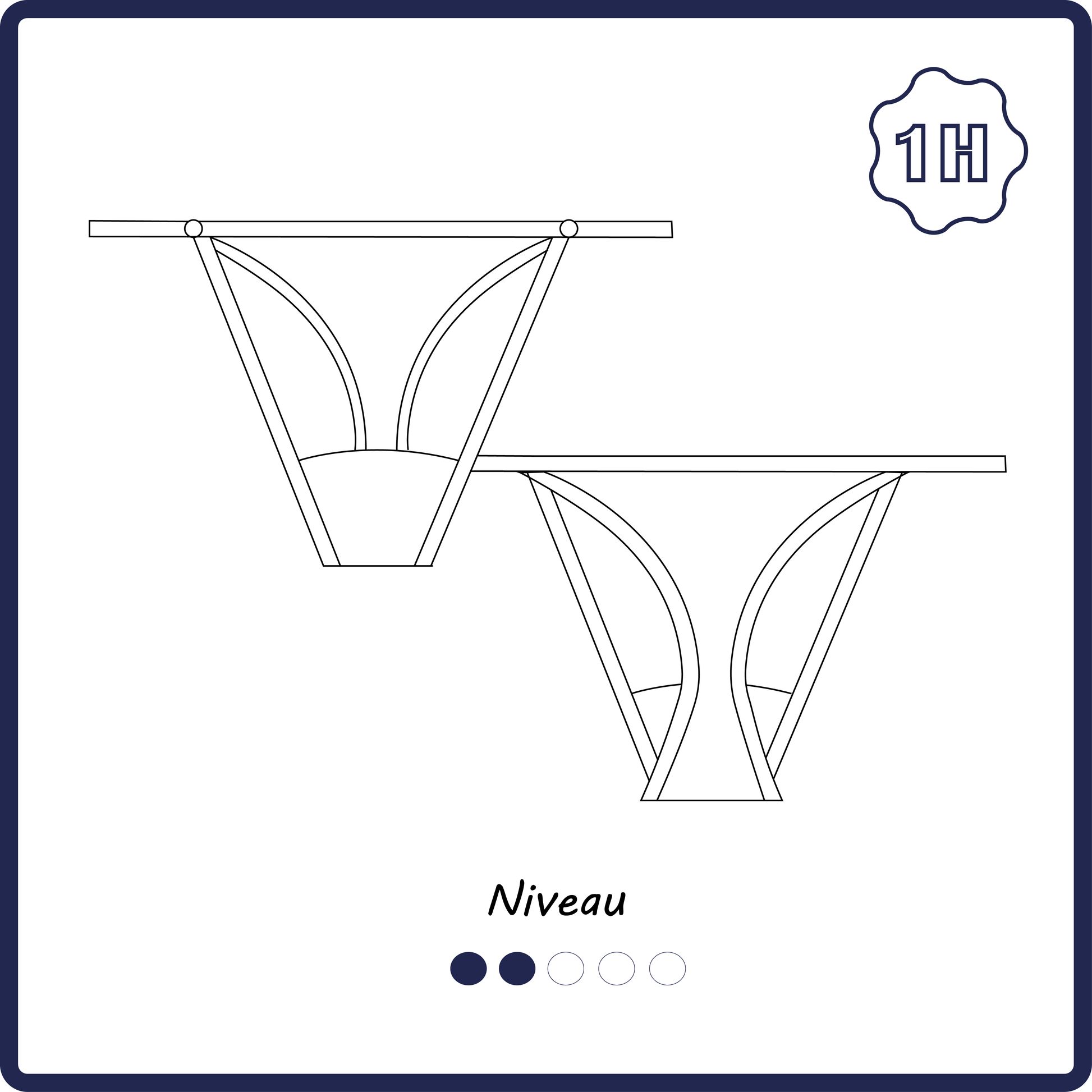 Ajoutez ce patron à votre collection et créez une culotte à votre image. Une fois que vous aurez maîtrisé ce modèle, vous serez prêt(e) à explorer d’autres créations lingerie !